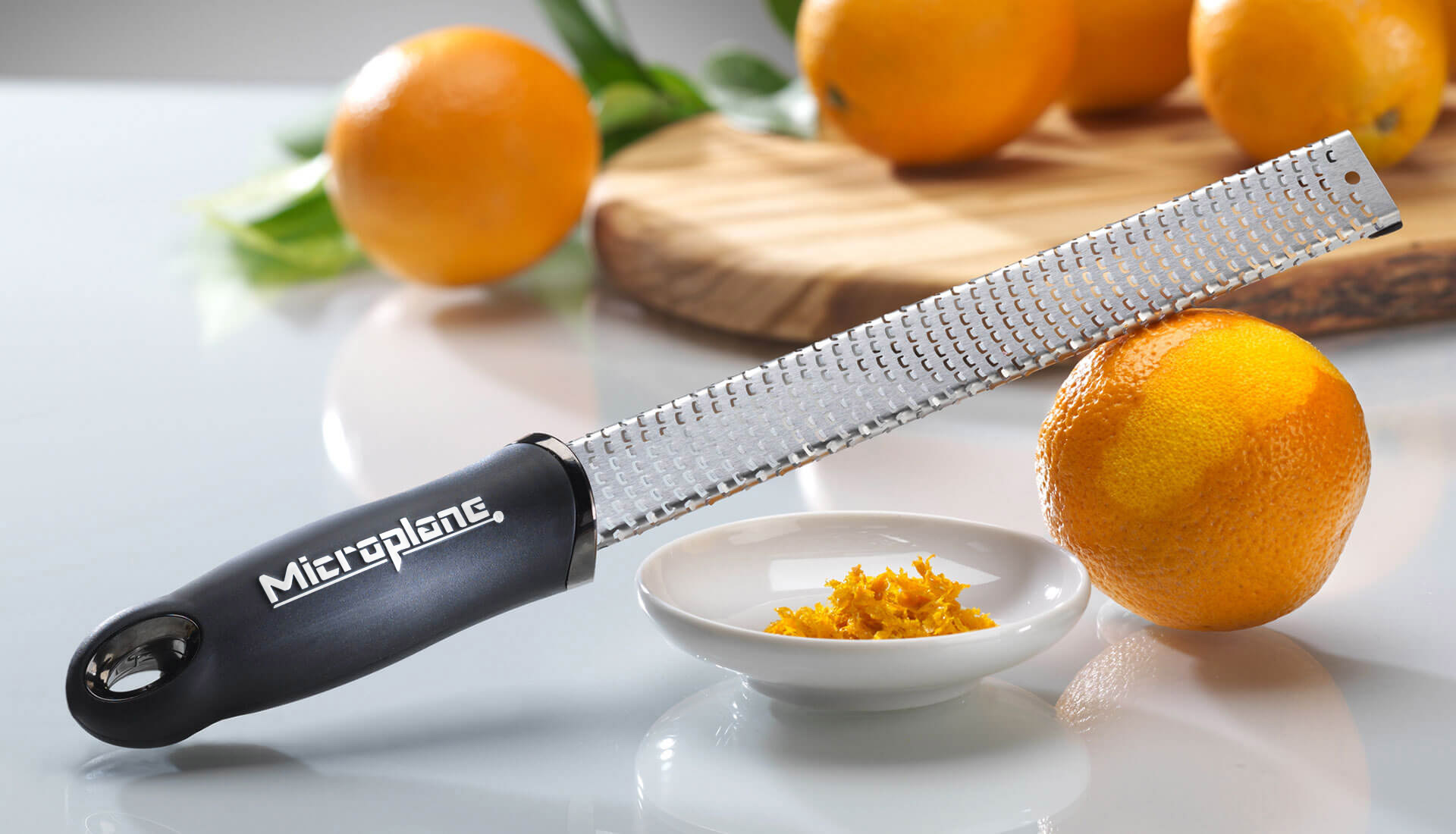 Ormai gli amanti della cucina di tutto il mondo conoscono la storia di Microplane®: la grande svolta per Microplane® arrivò nell’anno 1994, mentre una casalinga canadese preparava una torta all’arancia. Delusa dalla sua vecchia grattugia decise di provare con uno degli attrezzi da falegnameria del marito, una raspa per il legno Microplane®. La lama scivolò senza alcuna fatica sull’arancia e la scorza cadde leggera nell’impasto come tanti fiocchi di neve. Questa scoperta, che le minuscole e affilatissime lame della raspa per il legno potessero tagliare e grattugiare finemente anche gli alimenti, fu la pietra miliare del successo delle rivoluzionare grattugie Microplane®.